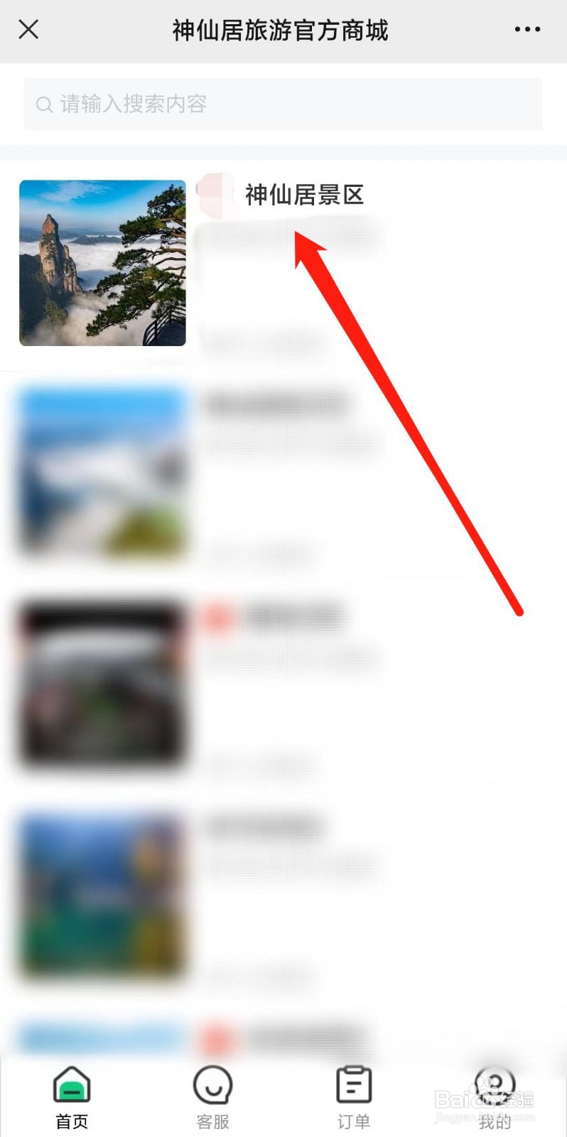 3、进入门票预订页面,找到“神仙居景区”并点击进入。